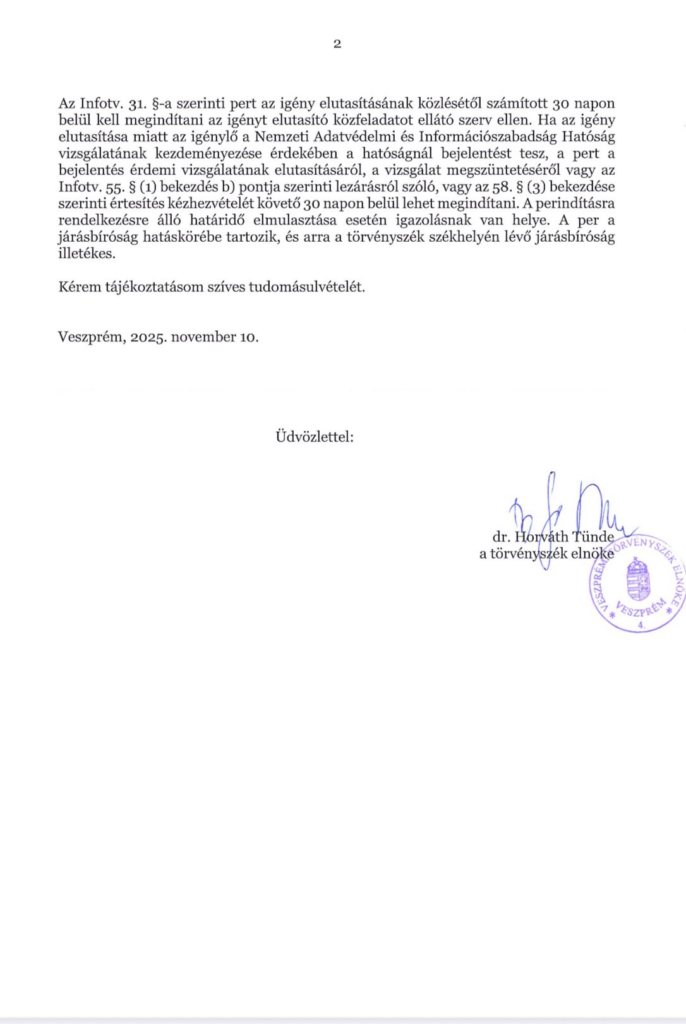 Ezt igazolja a Veszprémi Törvényszék elnökének, Dr. Horváth Tünde levele is. Ezek a tények és ez a valóság.